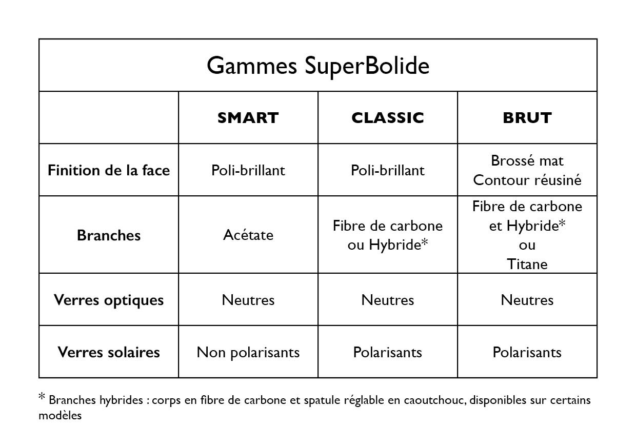 SuperBolide crée des lunettes optiques et solaires néo-rétro-chic dans lesquelles les plus beaux acétates côtoient la fibre de carbone et le titane, pour offrir à leur propriétaire l’élégance, la légèreté et l’esprit d’audace, de fairplay et de liberté qui caractérisent les pilotes et navigateurs qui risquaient leur vie à chaque course.